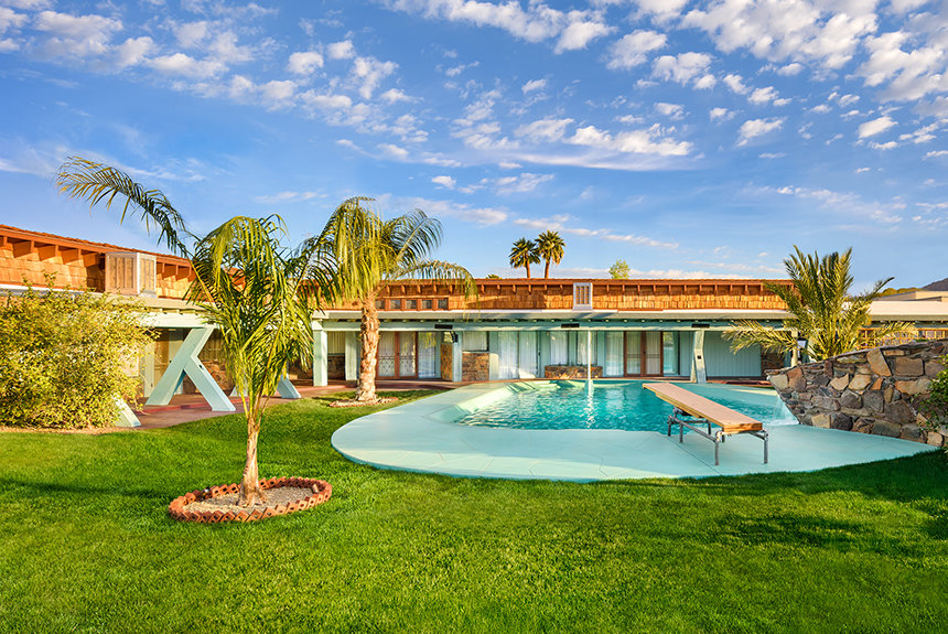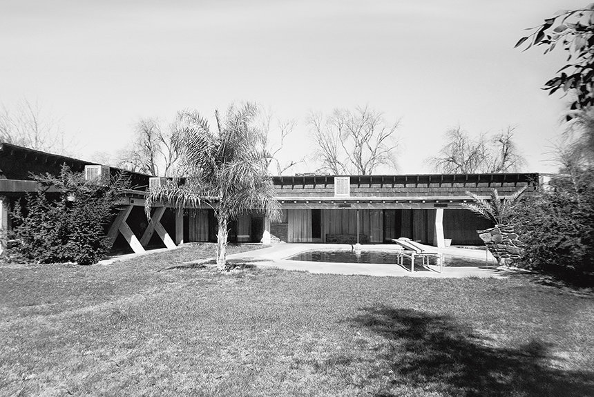 A sua propriedade em Osborn Road, um exemplo impressionante de arquitetura de estilo Prairie, foi construída em 1948, situada no meio do que era então um vasto pomar de citrinos, cobrindo uma área que desde então se desenvolveu até se tornar a zona suburbana de Phoenix. Na verdade, quando o Sr. Hubbard chegou pela primeira vez em 1954, o local ainda apresentava filas ordenadas de cerca de quarenta laranjeiras‑de‑umbigo desse pomar original.